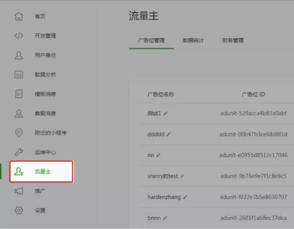 開(kāi)通流程:進(jìn)入微信公眾平臺(tái)小程序后臺(tái),點(diǎn)擊左側(cè)面板“流量主”,滿足開(kāi)通門檻的小程序開(kāi)發(fā)者直接點(diǎn)擊“開(kāi)通”即可創(chuàng)建相應(yīng)的廣告位。