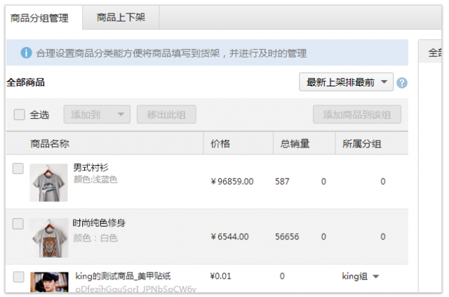 1. 商品分組管理:可以設置不同的分組來管理商品,分組可用于將商品填充到貨架中。