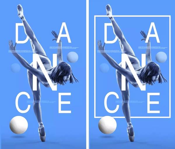 從左到右只是有無線框的差距,但在視覺上卻有形成了很大的反差,左側(cè)無線框元素的海報(bào),給人的感覺是:視覺元素不夠整體化,而且因?yàn)橐曈X元素多且沒有形成很好的相互約束作用,反而有點(diǎn)雜亂;而右側(cè)僅僅通過添加一個(gè)線框元素,將眾多元素規(guī)為一個(gè)整體,劃定視覺范圍,使得畫面整體性提升了很多,而且看似元素很多,但是正是因?yàn)榫€框的約束能力,畫面非但沒有雜亂的感覺,反而相對(duì)左側(cè)畫面整體來看給人的感覺更加整齊!