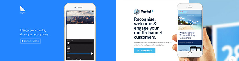 網頁設計時產品使用大圖標可以吸引用戶眼球,引導用戶點擊瀏覽,大圖標的效果完全取決與它異乎尋常的尺寸。大尺寸的圖標讓網站的整體效果特別好,甚至可以影響人們瀏覽網頁時從左到右、從上到下的閱讀習慣。如下圖,我們首先注意到的就是手機,然后是旁邊的文字和圖標,這種可視化設計不會分散瀏覽者針對主要元素的注意力,讓用戶無需分心注意環繞產品圖片四周的小圖標,當你需要進一步了解產品時,點擊這些小圖標它們的尺寸會自動放大,并且彈出詳細的產品介紹。