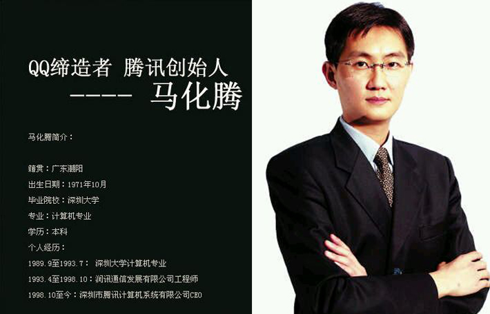 每一個成功創業者的背后都會有一點心酸的故事,因為人們很多的時候都只能看到事情的表面,只能看到成功人士在成功之后的輝煌,卻往往會忽視他在成功之前的艱辛付出,就拿馬化騰所創立的如今在國內非常知名的互聯網綜合服務商騰訊來說,它之所以能夠有今天的成就必定是經過時間的磨礪,在馬化騰的創業道路上也必定是布滿荊棘的。馬化騰1971年10月29日生于廣東省汕頭市潮南區,騰訊公司主要創辦人之一,現擔任騰訊公司控股董事會主席兼首席執行官;全國青聯副主席。