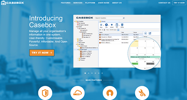 CaseBox是一個開源的基于 PHP&MySQL 開發的工具,用于存儲和管理記錄、任務和文件的 Web 應用。它有一個類似于桌面應用的界面并且我們可以在上面建立無線層級的目錄并且按照自己喜歡的結構形式存儲資料。