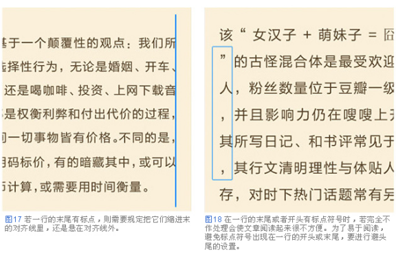 兩端對齊:可以保證段落文字整齊劃一,成規整的塊狀,但是打破了文字和字間空白之間形成的韻律,閱讀起來未必舒適。